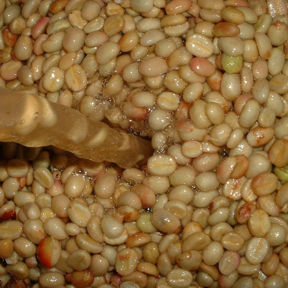 モストは果肉除去時に出た果汁を濾したのや、嫌気性発酵時にタンクの下にたまった果汁などを指します。発酵過程で重要な酵素がたくさん含まれ、独自の味わいにつながります。こちらのロットは、糖度24度以上のチェリーを収穫後、5時間ほど水に浸漬させてから、1回目のカーボニックマセレーションを48時間行いました。その間8時間毎にコーヒーモストの再循環を行います。2回目は、10時間毎にモストの再循環を行いながら、30時間実施されます。その後の乾燥工程は、23~24日間かけて水分値が10.5%になるまでアフリカンベッドで天日乾燥をしました。